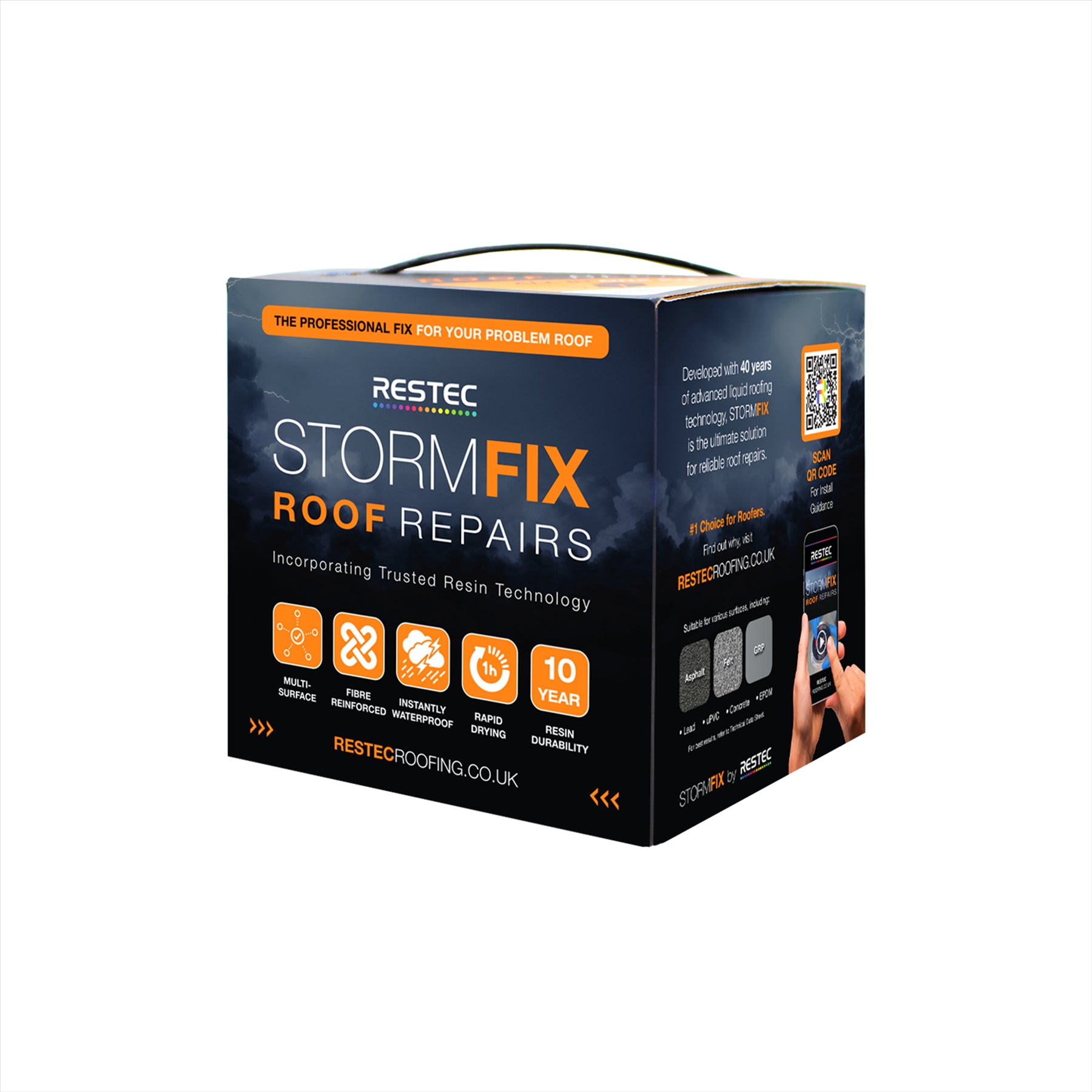 Stop leaks fast with the RESTEC StormFix Roof Repair Kit – a professional-grade, fibre-reinforced waterproofing resin system engineered for flat and pitched roofs. One coat, no primer, major results.